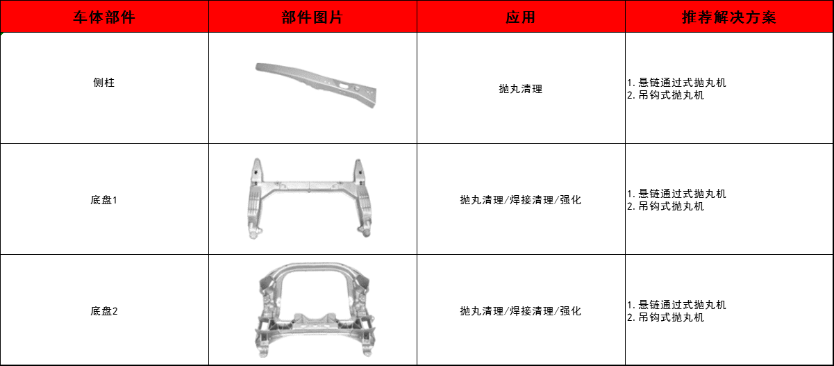 1.根據產品尺寸選擇型號。 2.適用*(此字廣告法禁止出現)大零件尺寸:長度:2800mm,寬度:400mm,高度:1000mm 3.適用*(此字廣告法禁止出現)大零件重量:2T。 4.拋丸器數量:16個。 5.拋丸器功率:11Kw/個。 6.拋丸器電機:ABB。 7.半自動流量控制閥:16套。 8.運行方式:全自動。 9.拋丸機入口尺寸:寬度:1000mm,高度:2800mm。 10.輸送方式:鏈條自動傳送。 11.PLC:西門子。 12.觸摸屏:西門子。